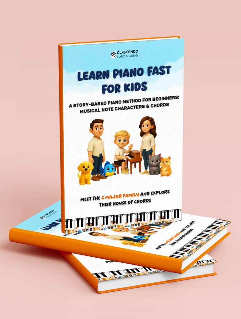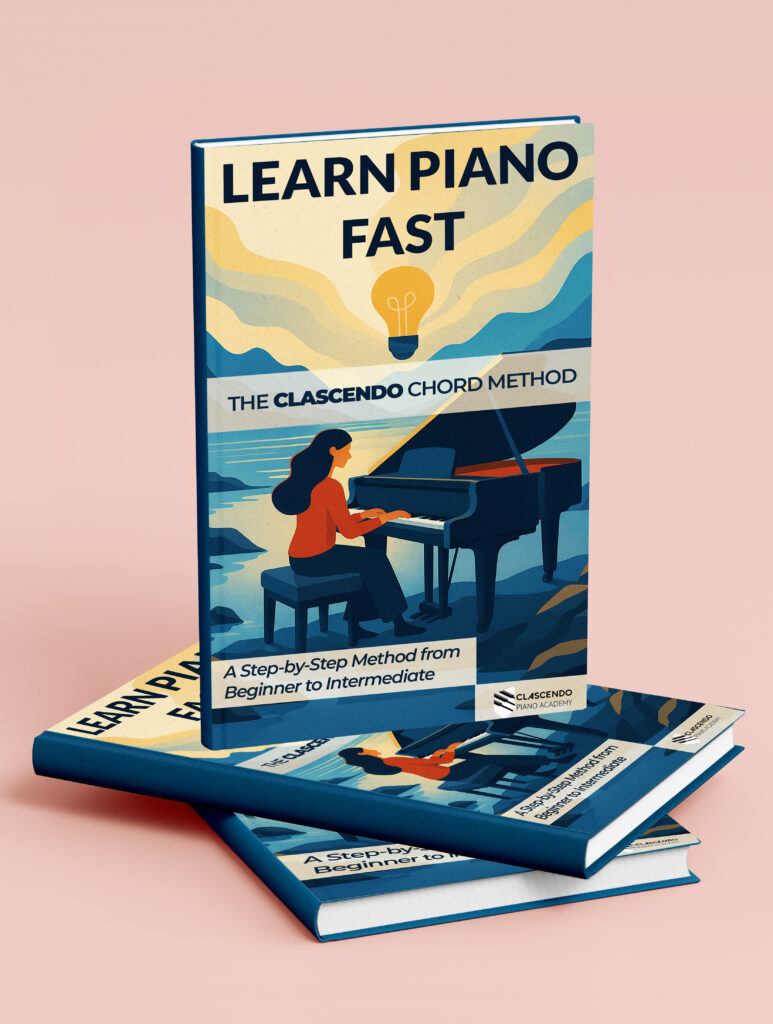 Learn piano online, with two revolutionary piano books that start with chords, build confidence fast, and make sheet music reading feel natural later.